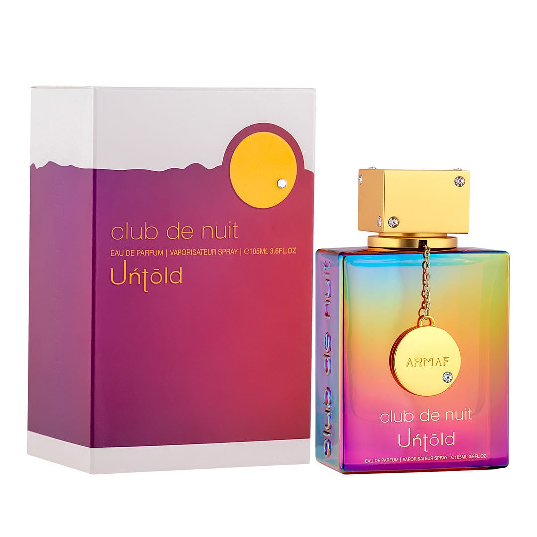 Club de Nuit Untold de Armaf es una fragancia de la familia olfativa para Hombres y Mujeres. Esta fragrancia es nueva. Club de Nuit Untold se lanzó en 2022. Las Notas de Salida son azafrán y jazmín; las Notas de Corazón son Amberwood y ámbar gris; las Notas de Fondo son resina de abeto y cedro.