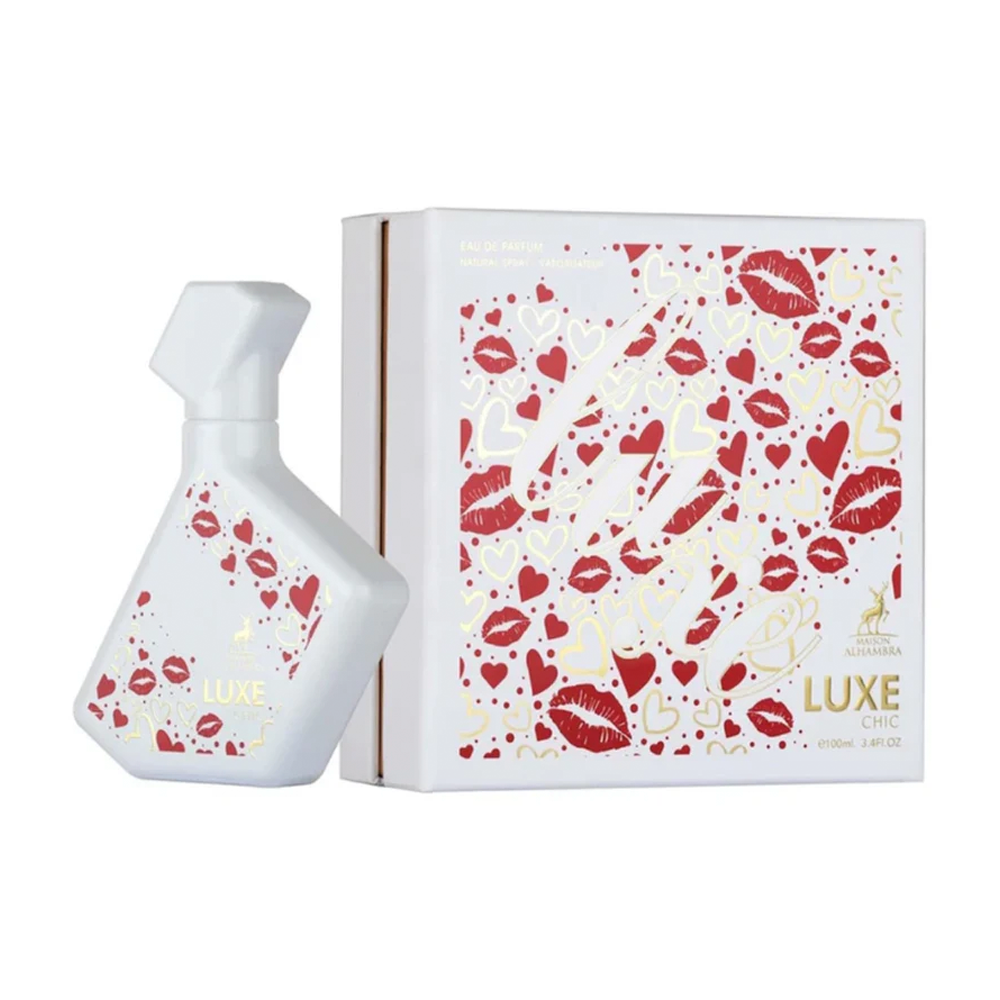 Luxe Chic de Maison Alhambra es una fragancia de la familia olfativa Almizcle Floral Amaderado para Mujeres. Luxe Chic se lanzó en 2024. Las Notas de Salida son naranja tangerina y fresia; las Notas de Corazón son lirio de los valles (muguete), jazmín y rosa; las Notas de Fondo son sándalo, ámbar y almizcle.