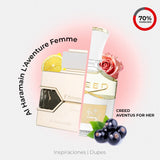 L'Aventure Femme de Al Haramain Perfumes es una fragancia de la familia olfativa Floral Frutal para Mujeres. L'Aventure Femme se lanzó en 2017. Las Notas de Salida son piña, grosellas negras, bergamota y bayas silvestres; las Notas de Corazón son cedro, fresia y rosa; las Notas de Fondo son almizcle, sándalo, ámbar y vainilla.