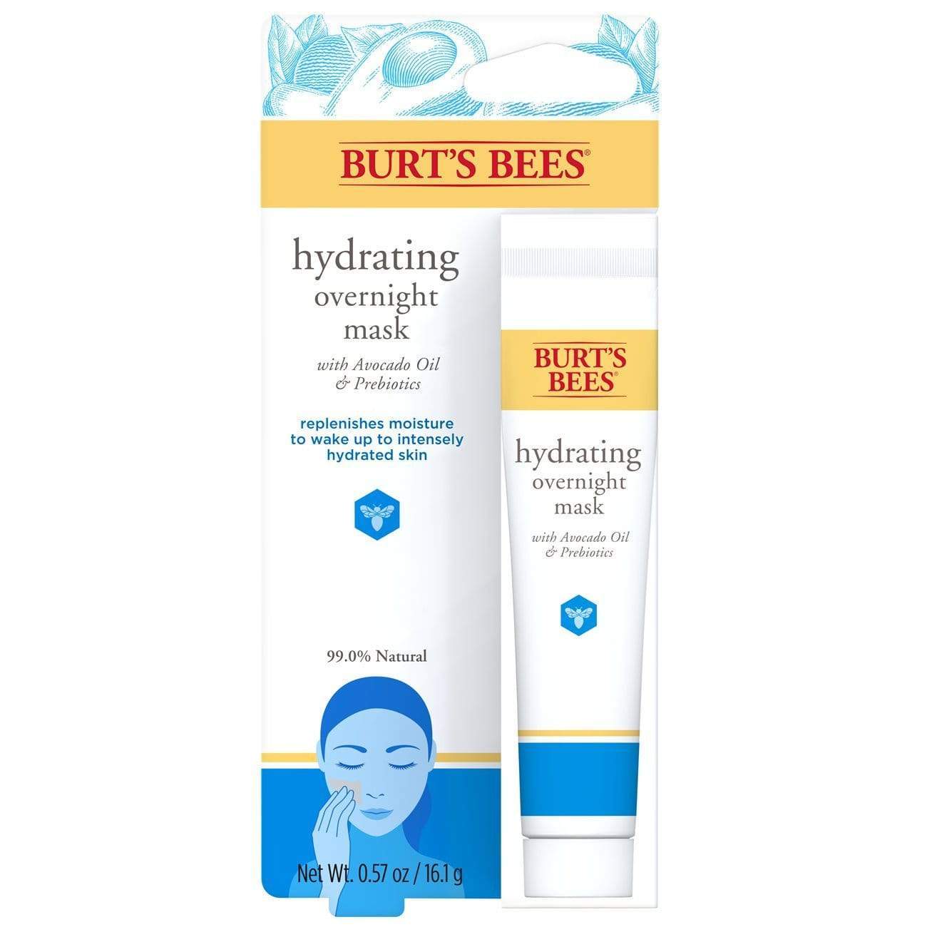La mascara de hidratacion nocturna de Burt's Bees repone la humectacion de tu piel mientras duermes para que puedas despertar con una piel intensamente hidratada. La formula 99% natural incluye algunos de los mejores ingredientes de la naturaleza, incluyendo aguacate, superfruta rica en acidos grasos, y prebioticos, que ayudan a tener un microbioma saludable. Proporciona hasta 24 horas de hidratacion, deja la piel luciendo renovada y saludable. Dermatologicamente probada, lo que quiere decir que es mas suave en tu piel y puedes sentirte bien añadiendo esto en tu rutina de noche. Dile buenas noches a tu piel seca y despierta con la piel naturalmente renovada y saludable.