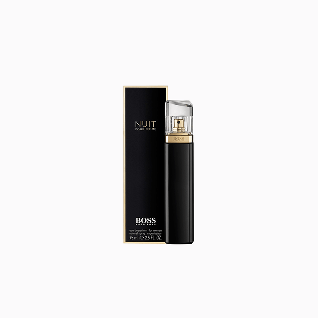 Boss Nuit Pour Femme de Hugo Boss es una fragancia de la familia olfativa Floral para Mujeres. Boss Nuit Pour Femme se lanzó en 2012. Las Notas de Salida son durazno (melocotón) y aldehídos; las Notas de Corazón son jazmín, violeta y flores blancas; las Notas de Fondo son sándalo y musgo.