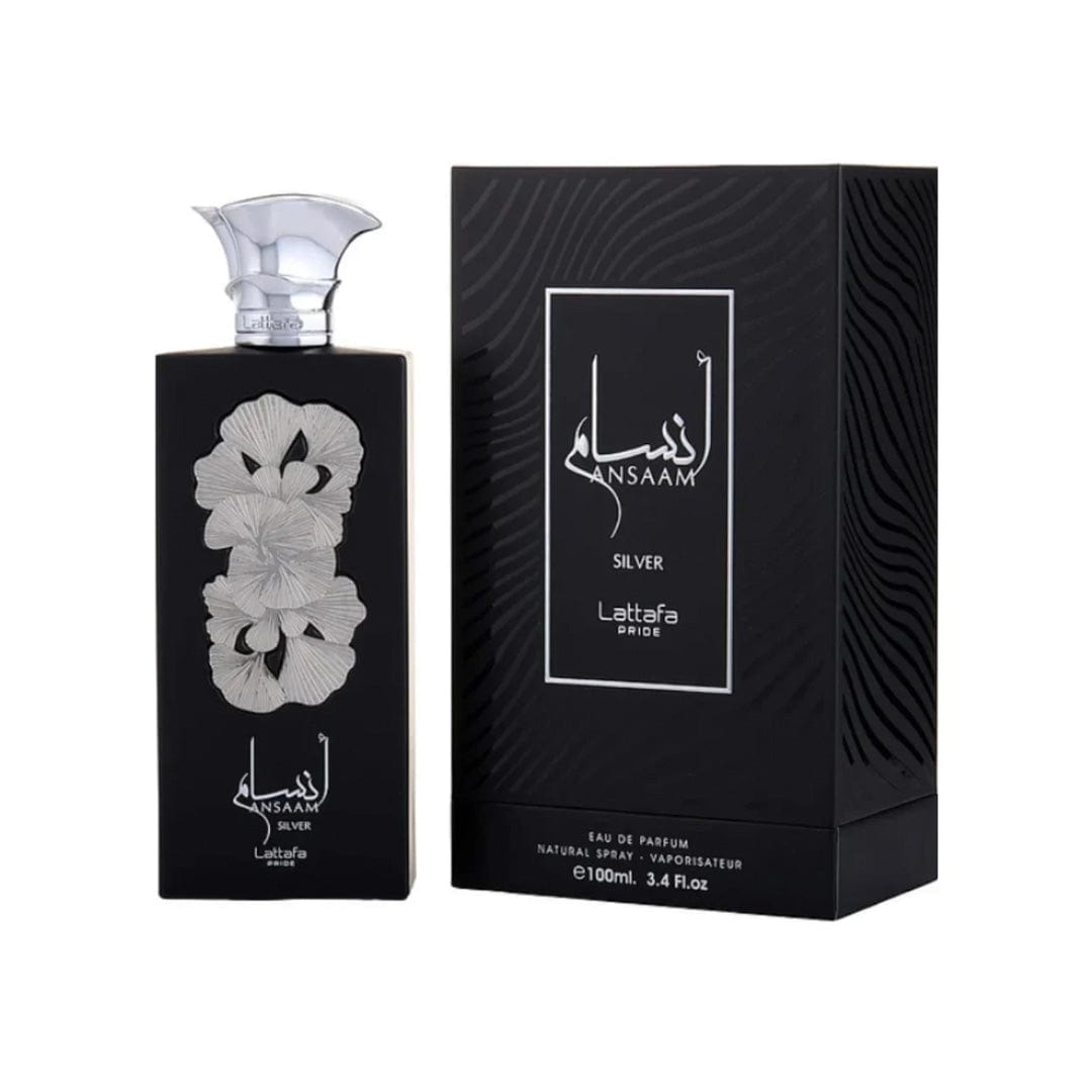 Ansaam Silver de Lattafa Perfumes es una fragancia de la familia olfativa para Hombres y Mujeres. Esta fragrancia es nueva. Ansaam Silver se lanzó en 2022. Las Notas de Salida son cardamomo y bergamota; las Notas de Corazón son lavanda y Davana; las Notas de Fondo son vainilla, ámbar y pachulí.