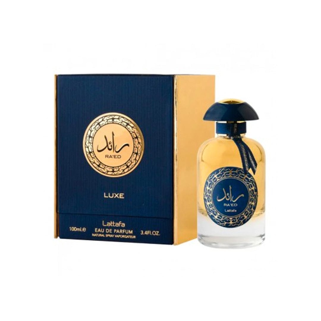 Ra'ed Luxe de Lattafa Perfumes es una fragancia de la familia olfativa Ámbar Especiada para Hombres y Mujeres. Ra'ed Luxe se lanzó en 2019. Las Notas de Salida son enebro de Virginia, piña, jazmín, sandía, flor de la acacia de Constantinopla (árbol de la seda) y pimienta rosa; las Notas de Corazón son lavanda, salvia, notas herbales y canela; las Notas de Fondo son Hielo, vetiver, ámbar, fresa, vainilla, haba tonka, almizcle, sándalo y castaña.
