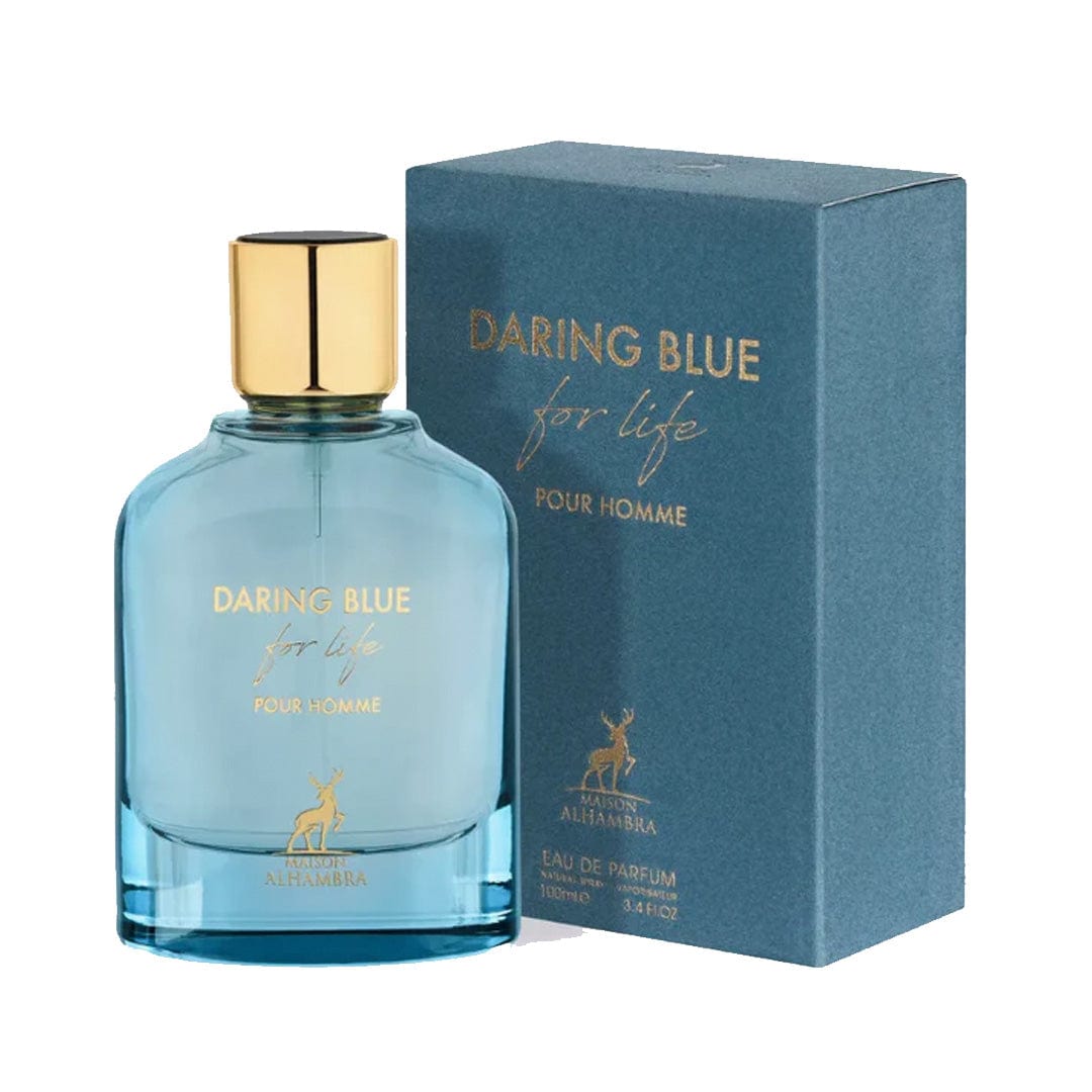 Daring Blue For Life de Maison Alhambra es una fragancia de la familia olfativa Aromática para Hombres.